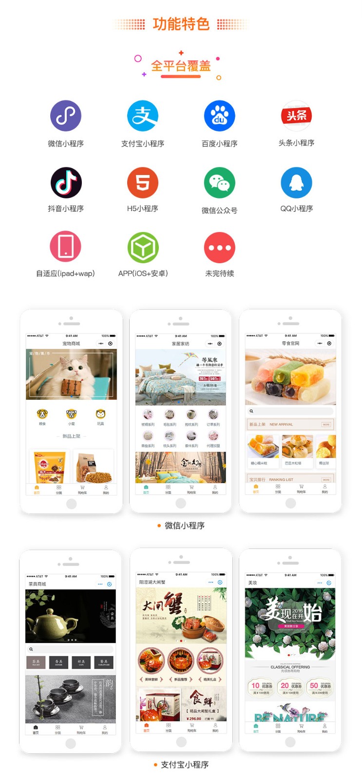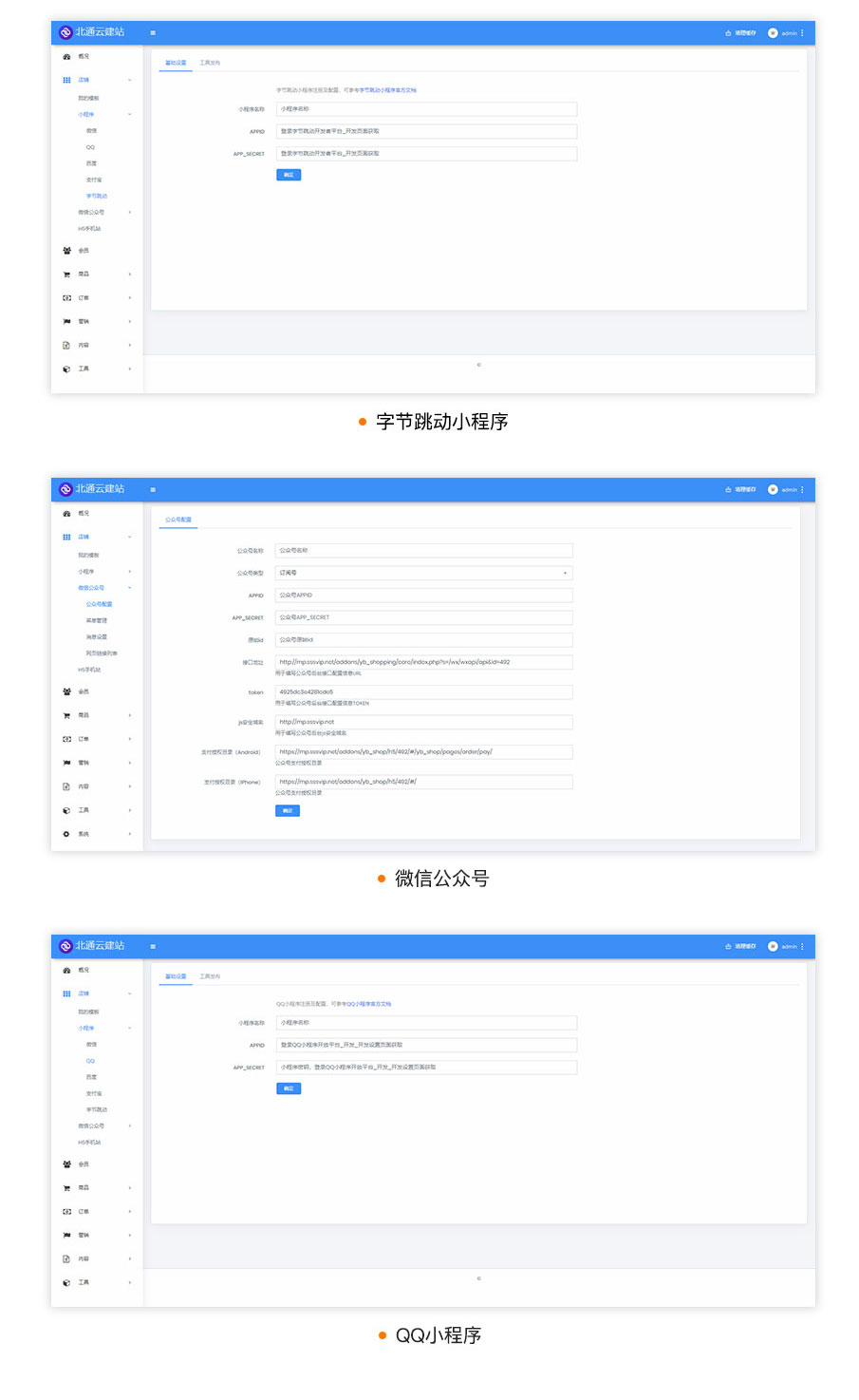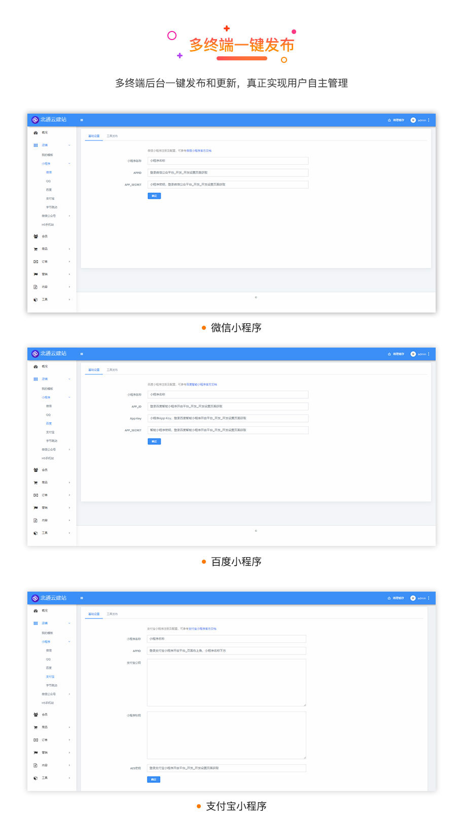 北通云建站·云店V2,是基于云店1.0的1000多名老客户使用和反馈基础上,全新的框架,重新架构和开发的新系统,主打3分钟全平台开店,微信,支付宝,头条,抖音,QQ全平台覆盖,全平台-键生成,一个后台统-管理所有商品和订单,千套模板一键导入,不管是商品交易还是营销引流,都能简单轻松实现,搭配独有得商家端获客系统,精准的数据监控,品,订单,配送,客服,内容,营销等全方位移动化,轻松链接和触达每个潜在客户,让交易更加简单。